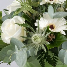 This all round arrangement of striking greens, whites and silvers is delivered set within a ceranic pot.